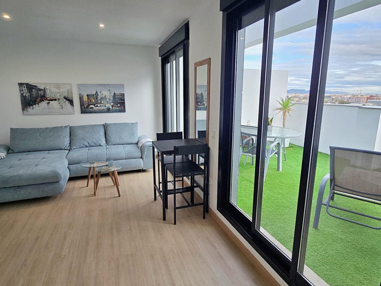 Se alquila este bonito y luminoso ático, ubicado en un edificio residencial con zonas verdes, piscina y servicio de conserjería. Situado en la misma Avenida Alfahuir, el apartamento se entrega totalmente amueblado y equipado. Cuenta con 35 m² construidos y una distribución cómoda y funcional en un único espacio tipo loft, con cocina americana equipada, baño completo y una espaciosa terraza con impresionantes vistas.